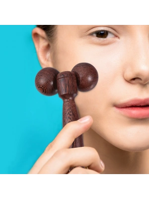 Maderoterapi Ahşap Yüz Yogası Masaj Aleti | El Yapımı, Doğal Cilt Şekillendirici Roller