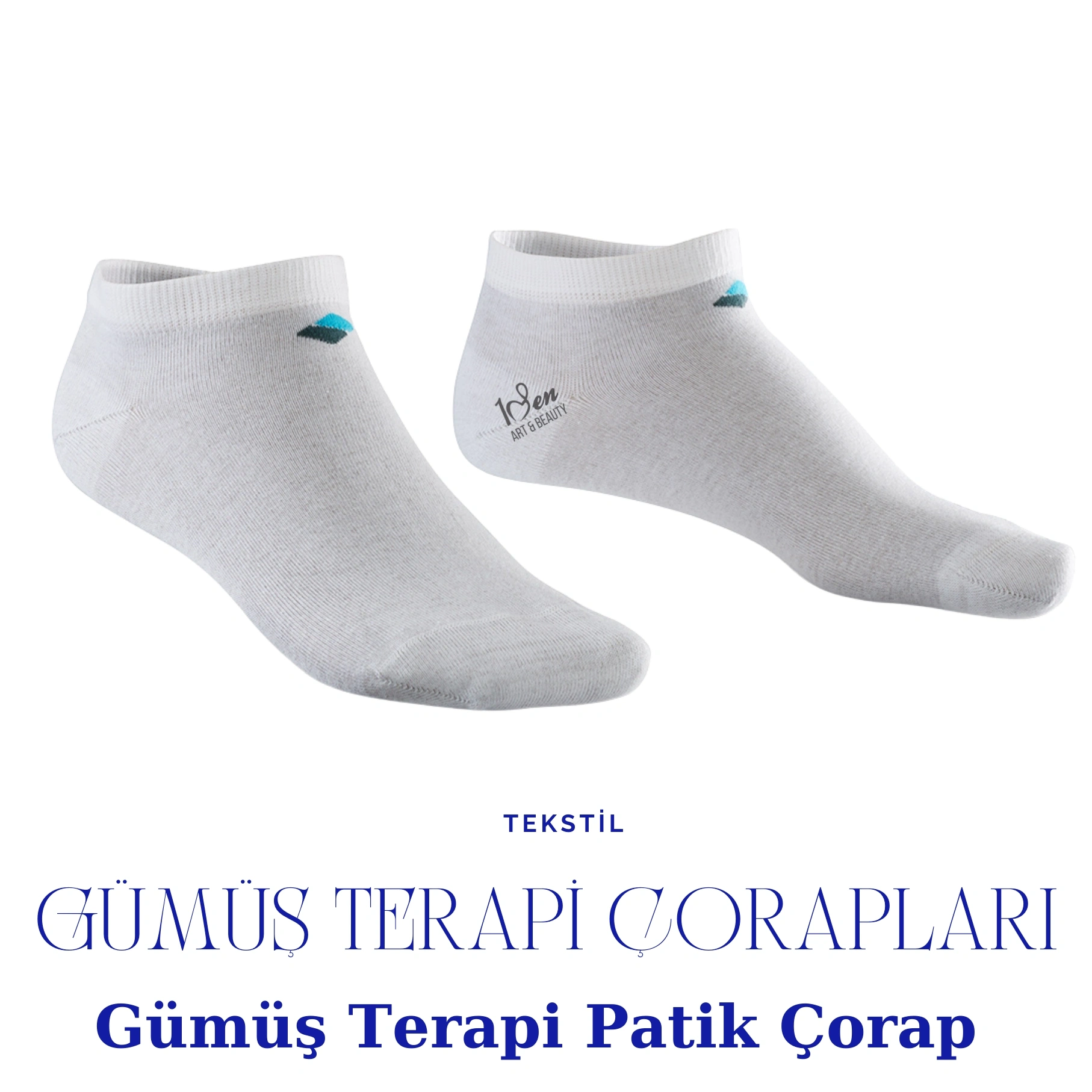 Gümüş Terapi Patik Çorap, kadın ve erkek kullanımına uygun olarak tasarlanmış, günlük konforu ve ayak hijyenini desteklemeye yardımcı premium bir çoraptır. Gümüş iplik teknolojisi ile zenginleştirilmiş yapısı sayesinde gün boyu ferah bir kullanım hissi sunarken, patik formu ile ayakta doğal ve dengeli bir duruş sağlar.