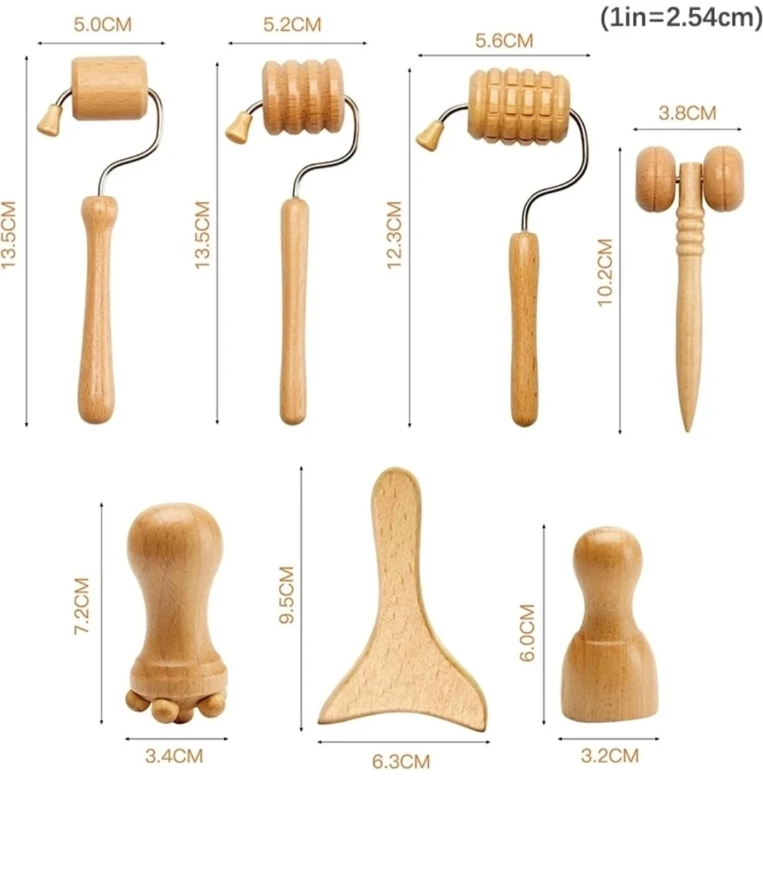Set, %100 doğal ağaç malzemeden üretilmiş olup hem evde kullanım hem de profesyonel uygulamalar için uygundur. Yüz şekillendirme, gıdı toparlama ve ince çizgilerin azaltılmasına destek olmak amacıyla geliştirilmiştir.